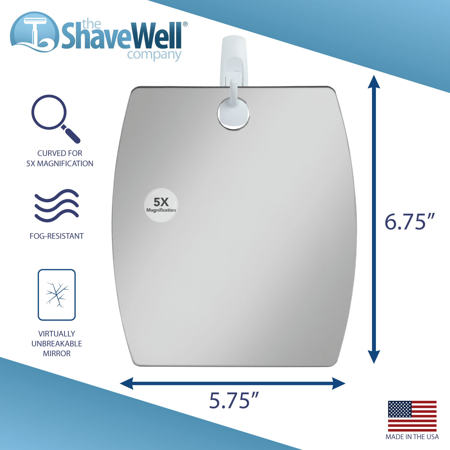 Shave Well 5X Magnified Fog Free Shower Mirror - Fogless Bathroom Shaving Mirror